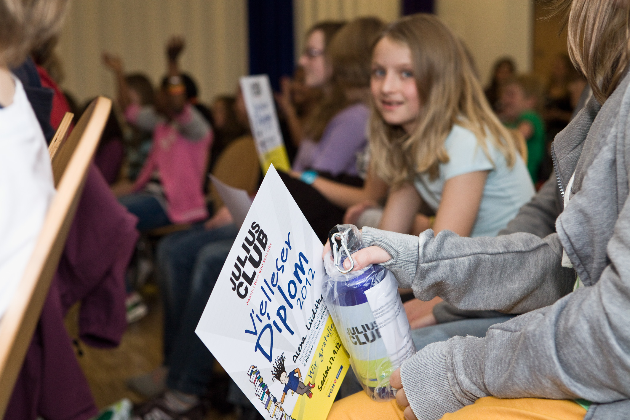 Vorheriges Bild Nächstes Bild Julius-Club 2012 Diplome und Trinkflaschen, Seelze Julius-Club 2012 Diplome und Trinkflaschen, Seelze Julius-Club Abschlussveranstaltung „Buecher-Quiz“ mit Frank Sommer
