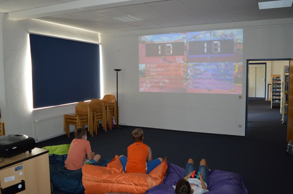 Heute wurde gezockt was das Zeug hält. In Teams oder auch gegeneinander wurden die Klassiker Mario Kart auf der Switch und FIFA auf der Playstation gespielt. Die Jungs zeigten ihr Können an der Konsole und die ab und zu mal mitspielenden Mitarbeiter hatten nicht den Hauch einer Chance!