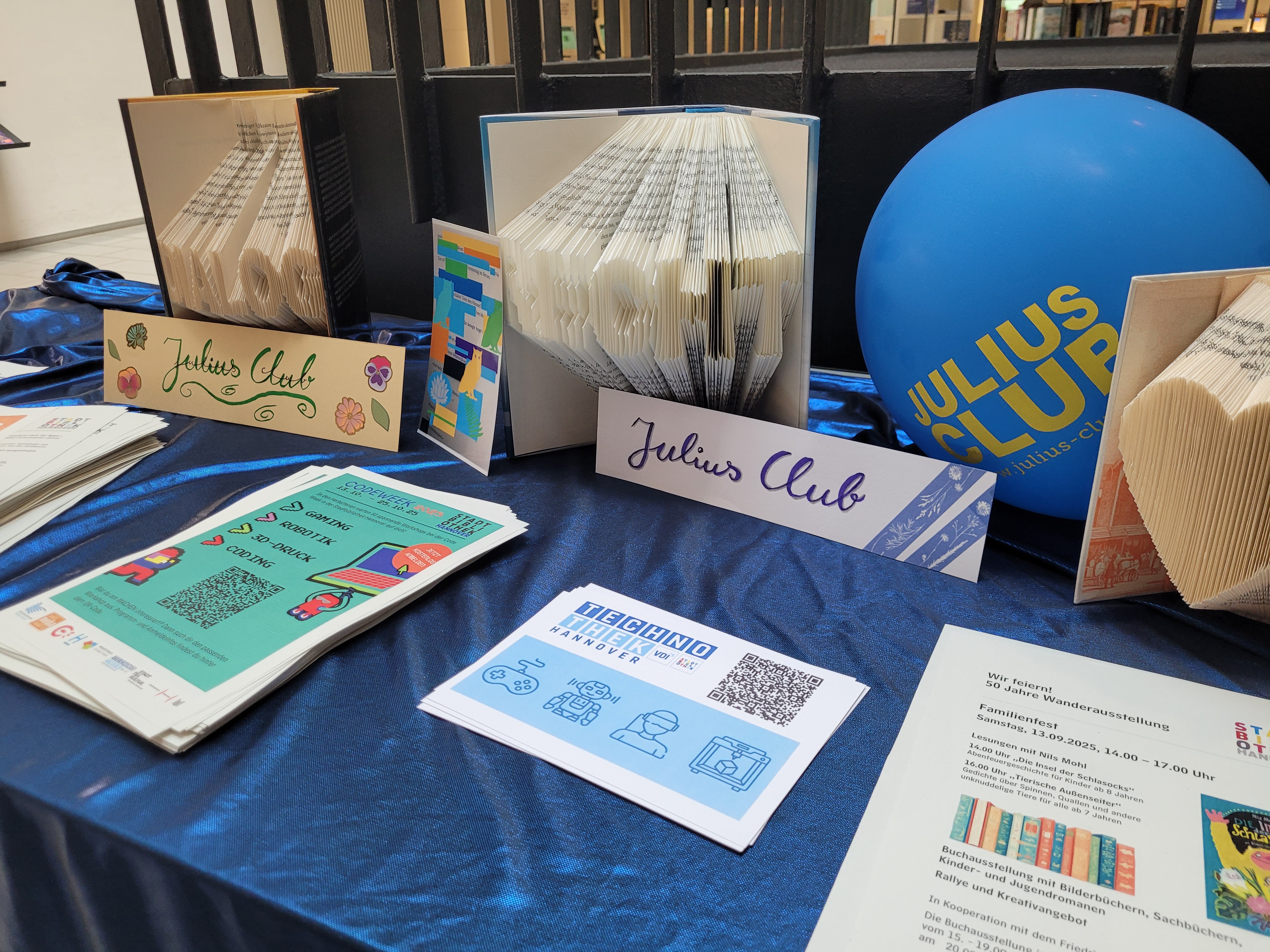 Im Anschluss ließen wir den Nachmittag gemütlich im Kinder- und Jugendbereich der Zentralbibliothek ausklingen. Dort kam auch das neue JULIUS CLUB Banner gut zur Geltung – wir lieben es!