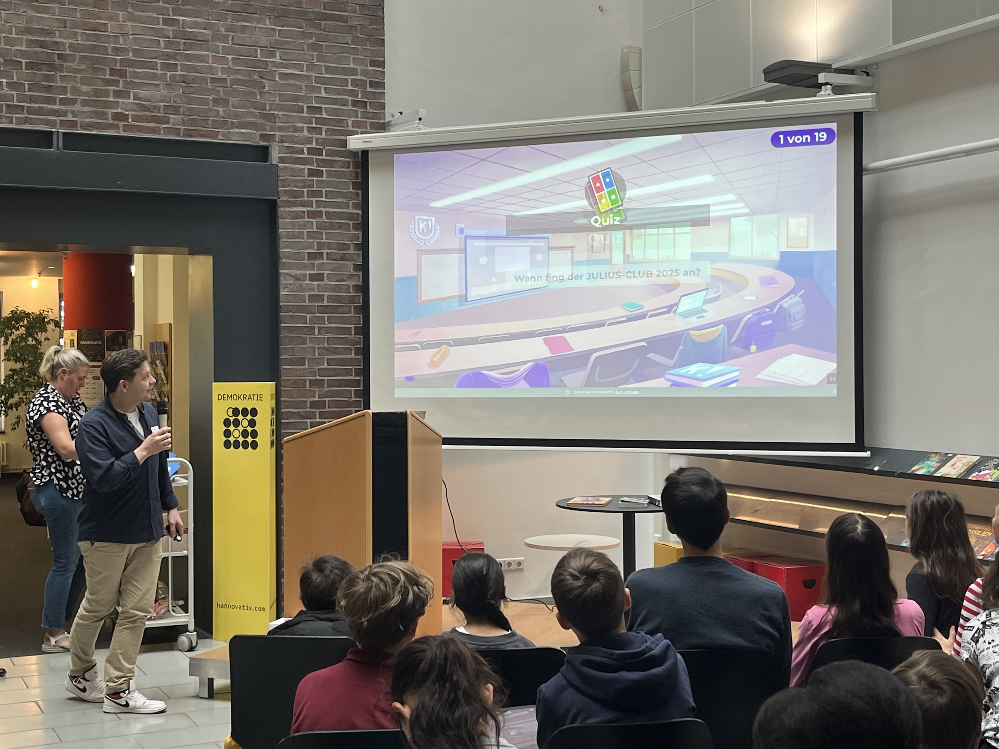 Für gute Stimmung sorgte ein spannendes Kahoot-Quiz sowie unsere Tombola mit großartigen Preisen. Der Hauptgewinn, eine SEA LIFE Jahreskarte, wurde mit Begeisterung entgegengenommen. Weitere Preise waren Bädergutscheine, Buchgutscheine, brandneue Kinder- und Jugendbücher sowie Postkarten und Lesezeichen mit dem JULIUS CLUB Motiv.