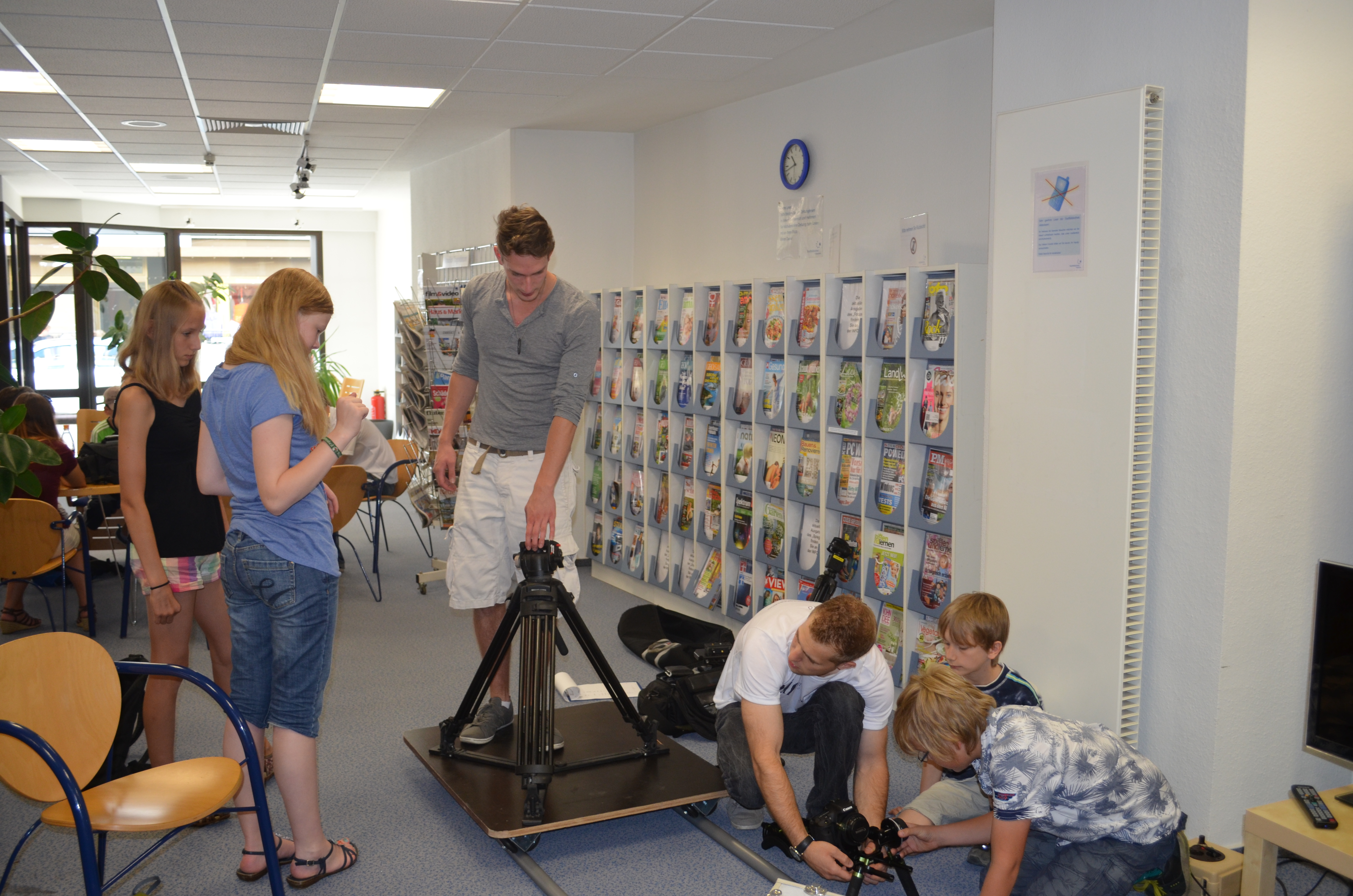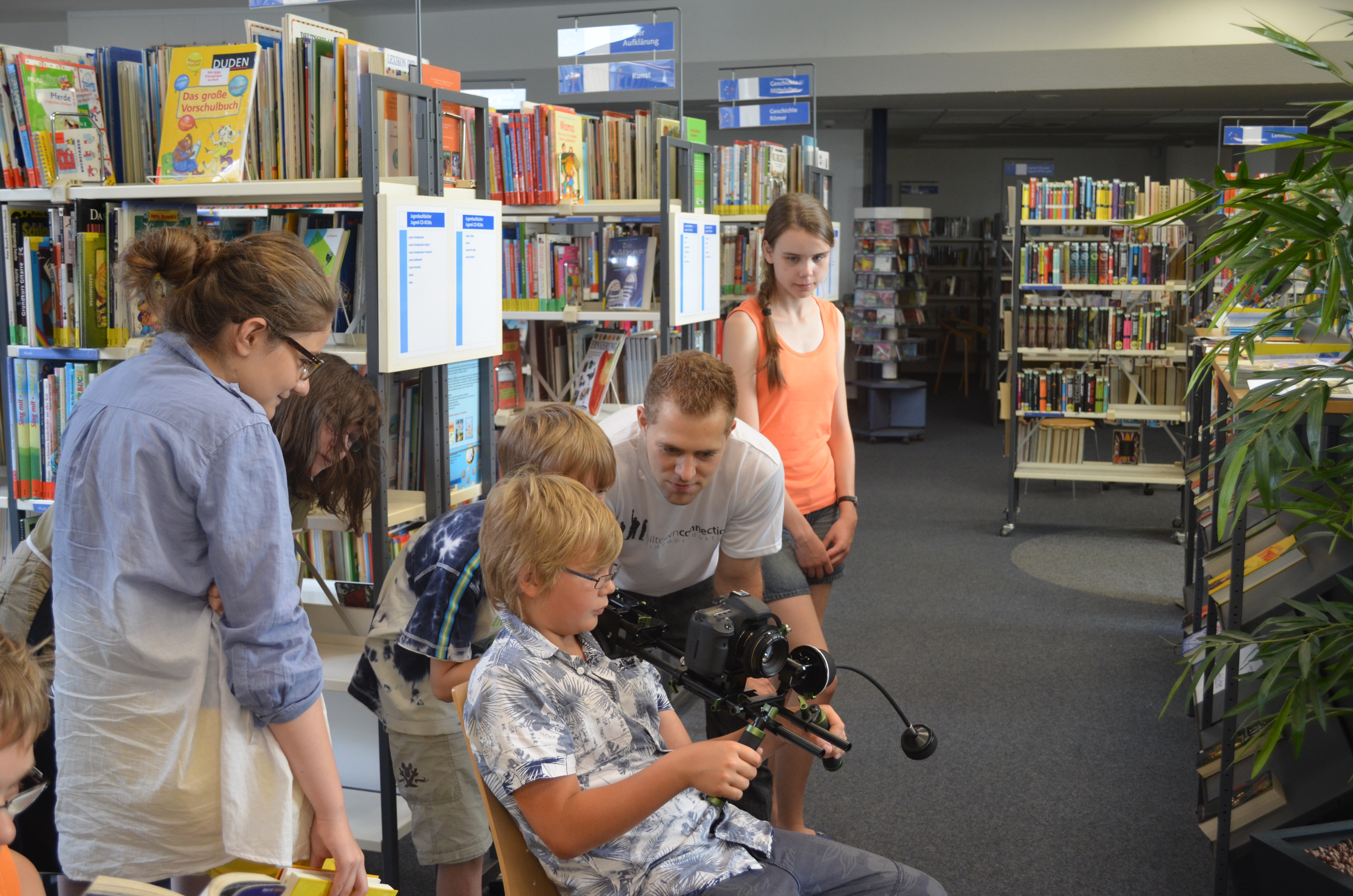 Die Stadtbibliothek bildete hierbei den Dreh- und Angelpunkt und diente nicht nur als Vorbesprechungs- und Ideenraum sondern auch als Kulisse.