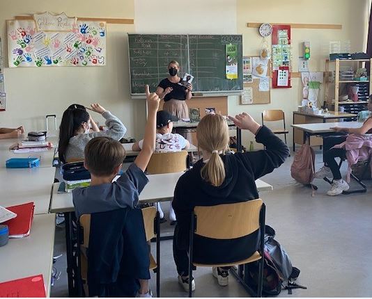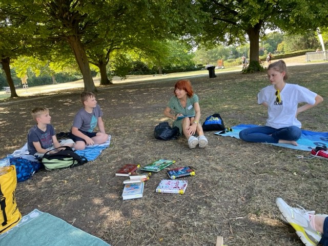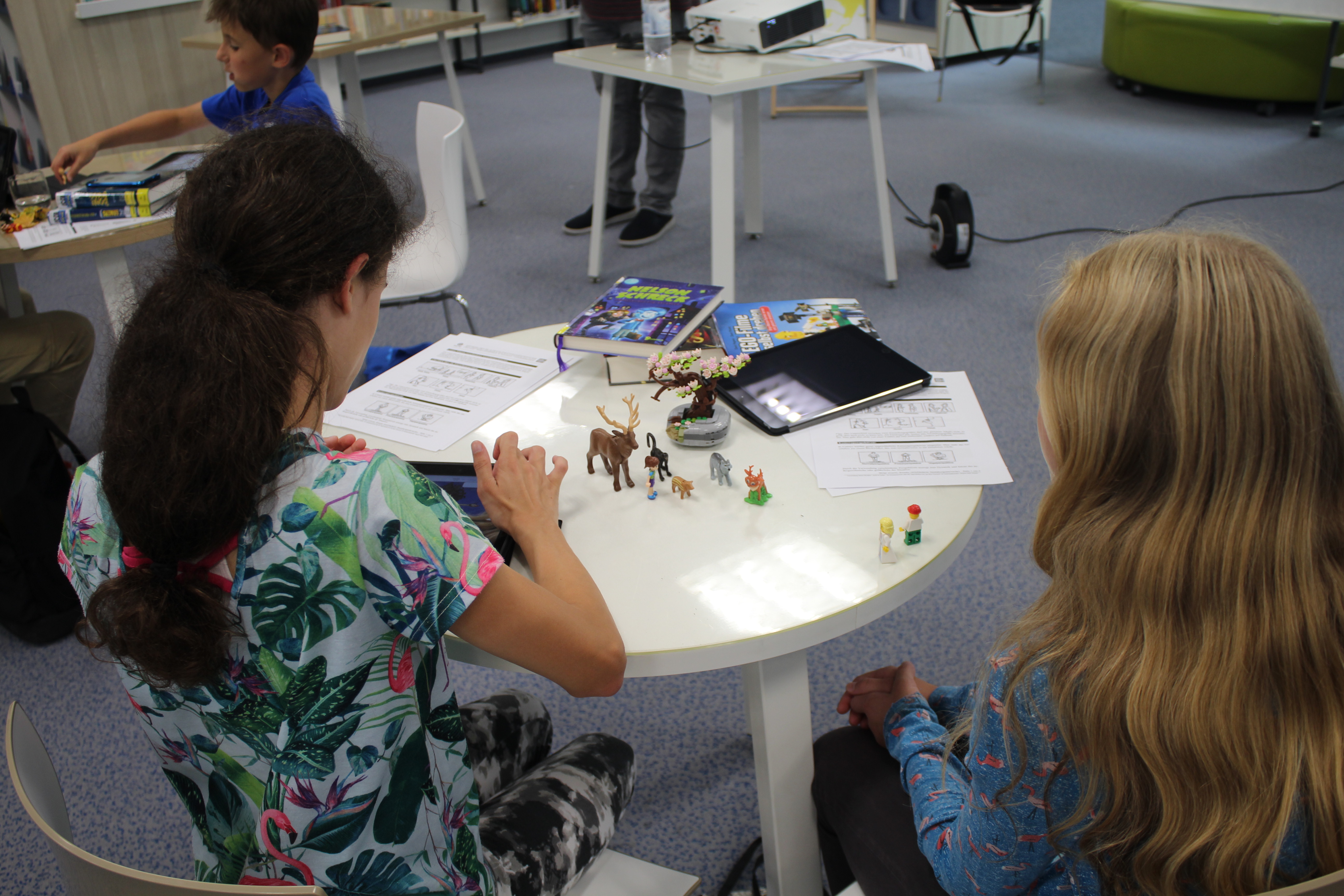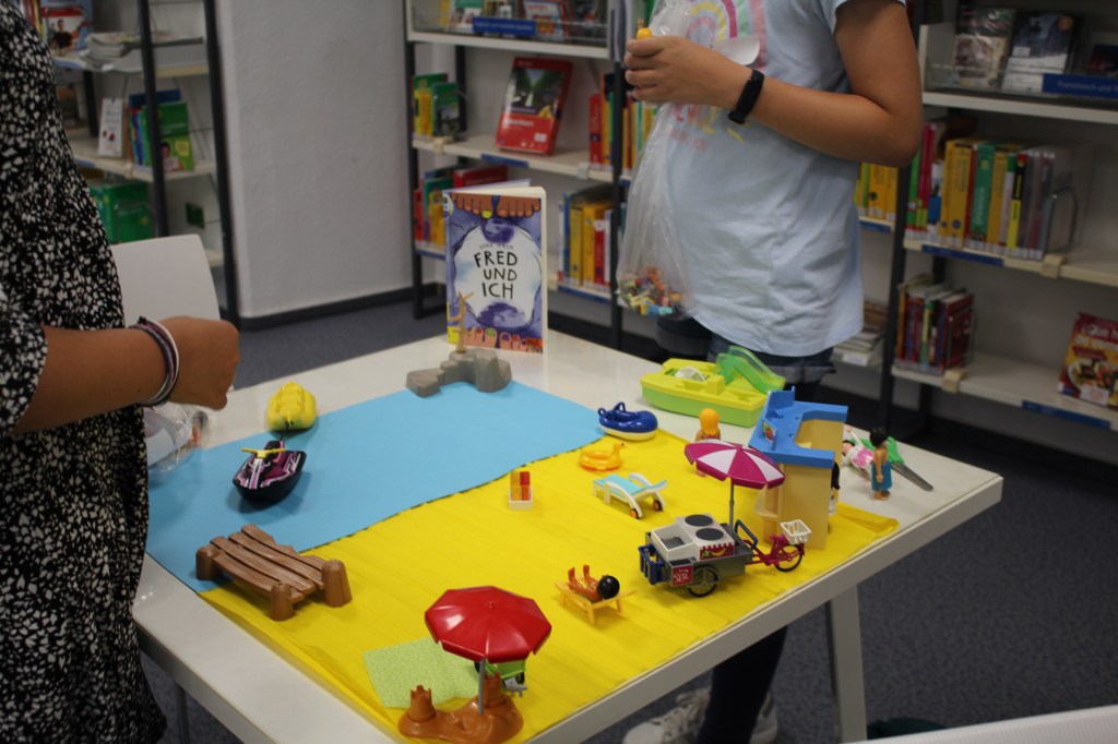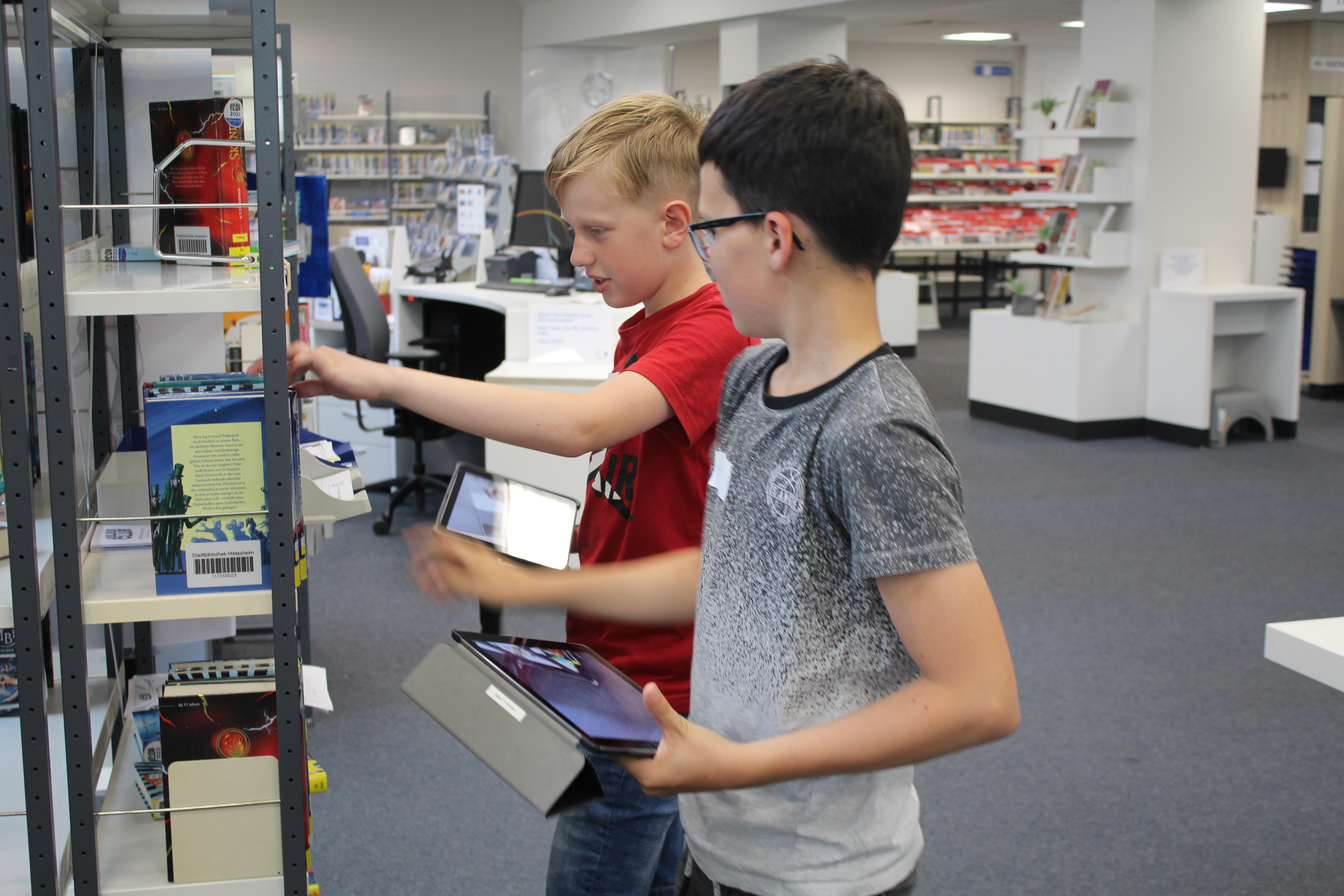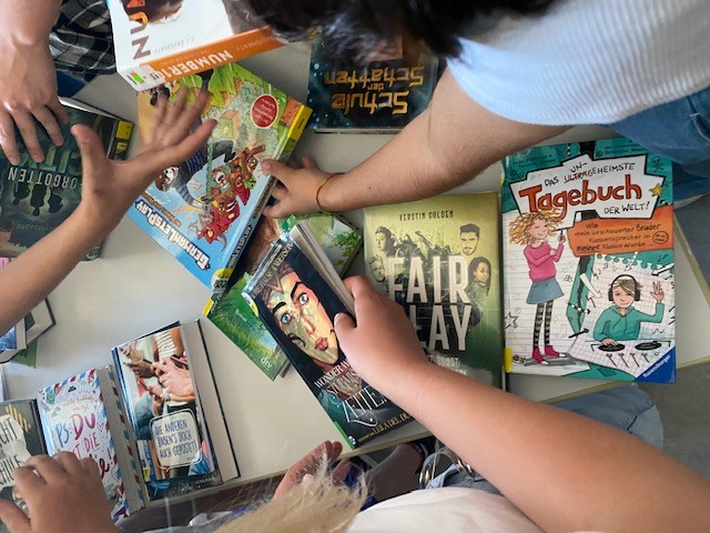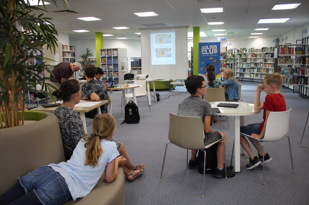 So lautete die Aufgabe für die Mädchen und Jungen, die nach kurzem Grübeln unterschiedliche Orte in der Hildesheimer Stadtbibliothek für ihre Ideen nutzten. Die kreativen Teams arrangierten, fotografierten und texteten mit witzigen, fantasievollen Ergebnissen. „FUB“ – Und ich bin zurück in der Realität“ freute sich Bastian, nachdem er zuvor in Gregs Tagebuch verschwunden war. „Genial!“ fand Referent Norbert Thien vom Multimediamobil Südniedersachsen die entstandenen, sehr fantasievollen Comics. Eine tolle Veranstaltung, in der sogar neue Freundschaften zwischen den Julianer:innen entstanden.