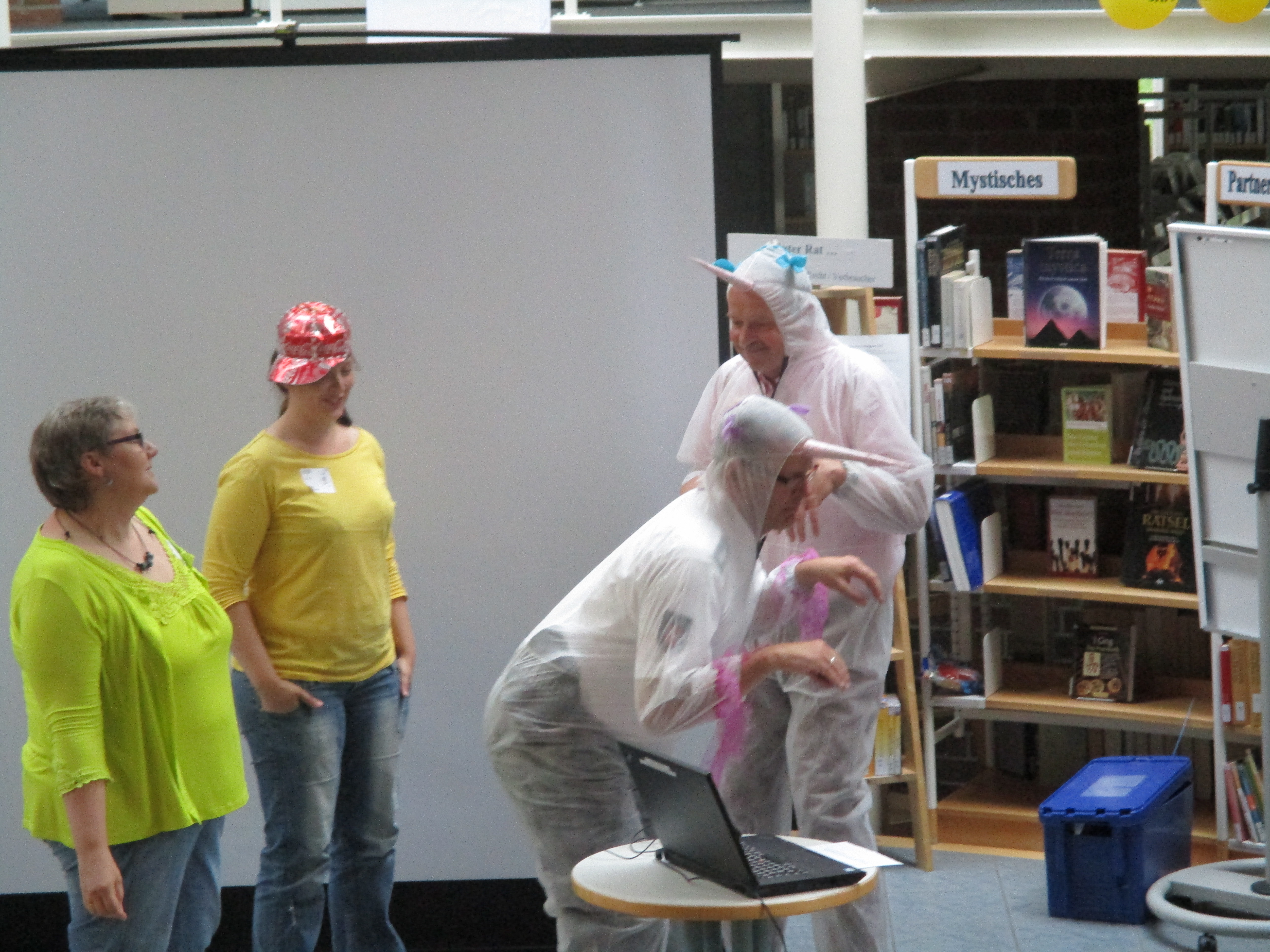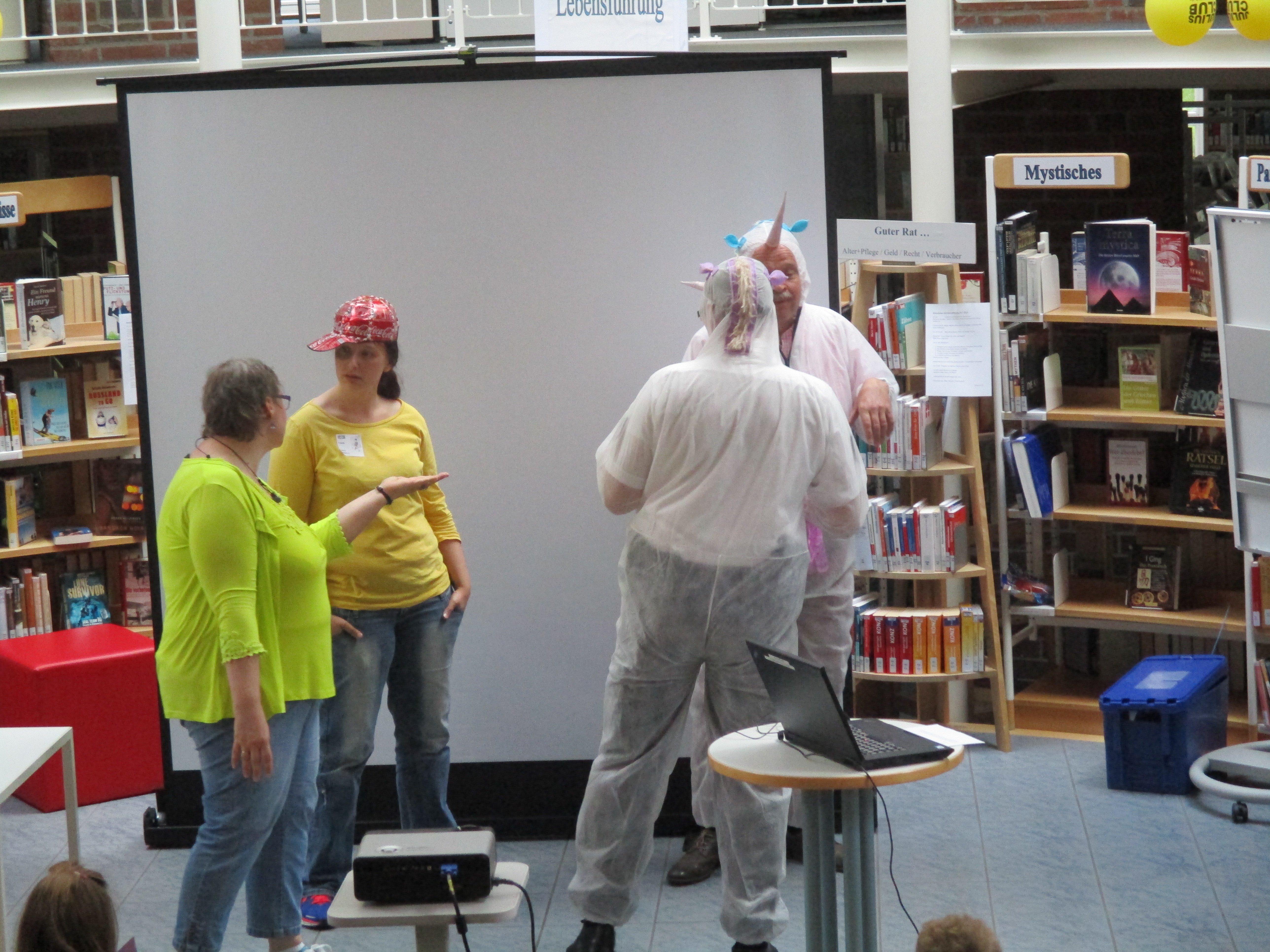 Am 10. Juli startete der JULIUS-CLUB in der Stadtbibliothek Rotenburg mit der Auftaktveranstaltung. Wie in jedem Jahr gab es einige verrückte Bookslam und den schon traditionellen Sturm auf die JULIUS-Bücher, bei dem auch diesmal wie durch ein Wunder niemand verletzt wurde 😉 Besonderes Highlight war der Auftritt von Bürgermeister Weber und Polizist Fred Krüger als zickige Einhörner beim Bookslam zu „Magic Park“. Einen Videoclip dazu gibt es auf unserer Facebookseite http://www.facebook.com/StadtbibliothekRotenburg