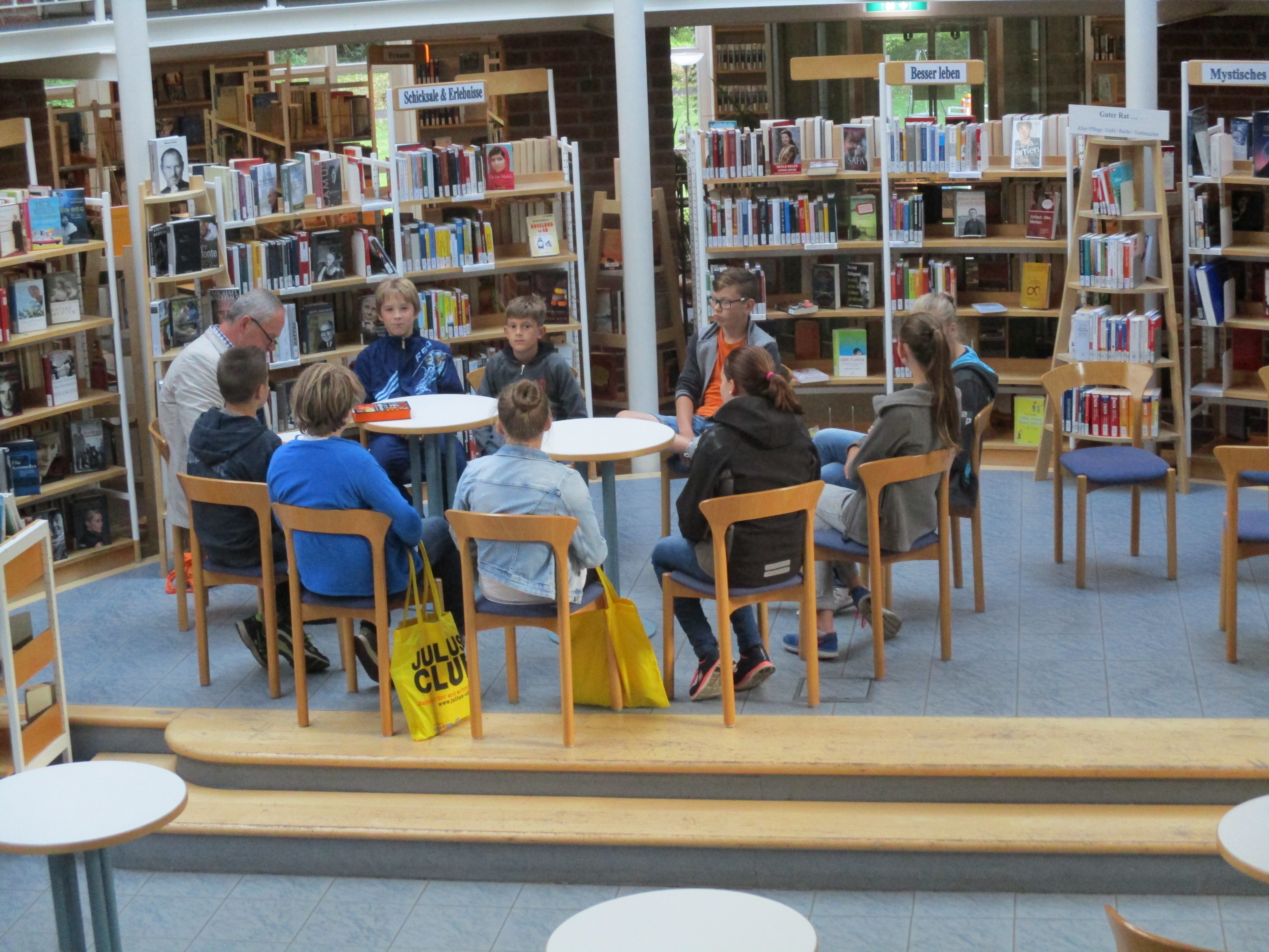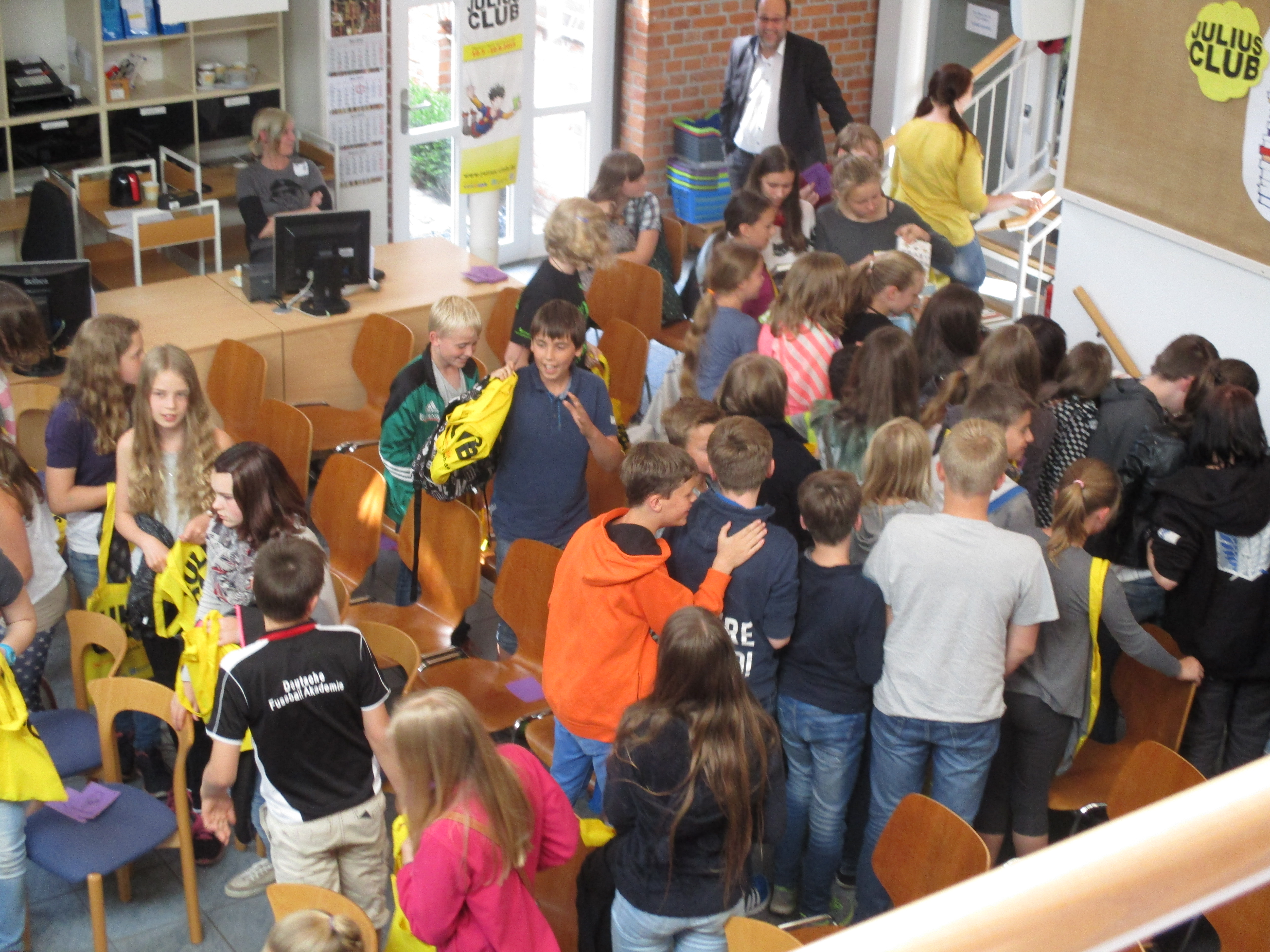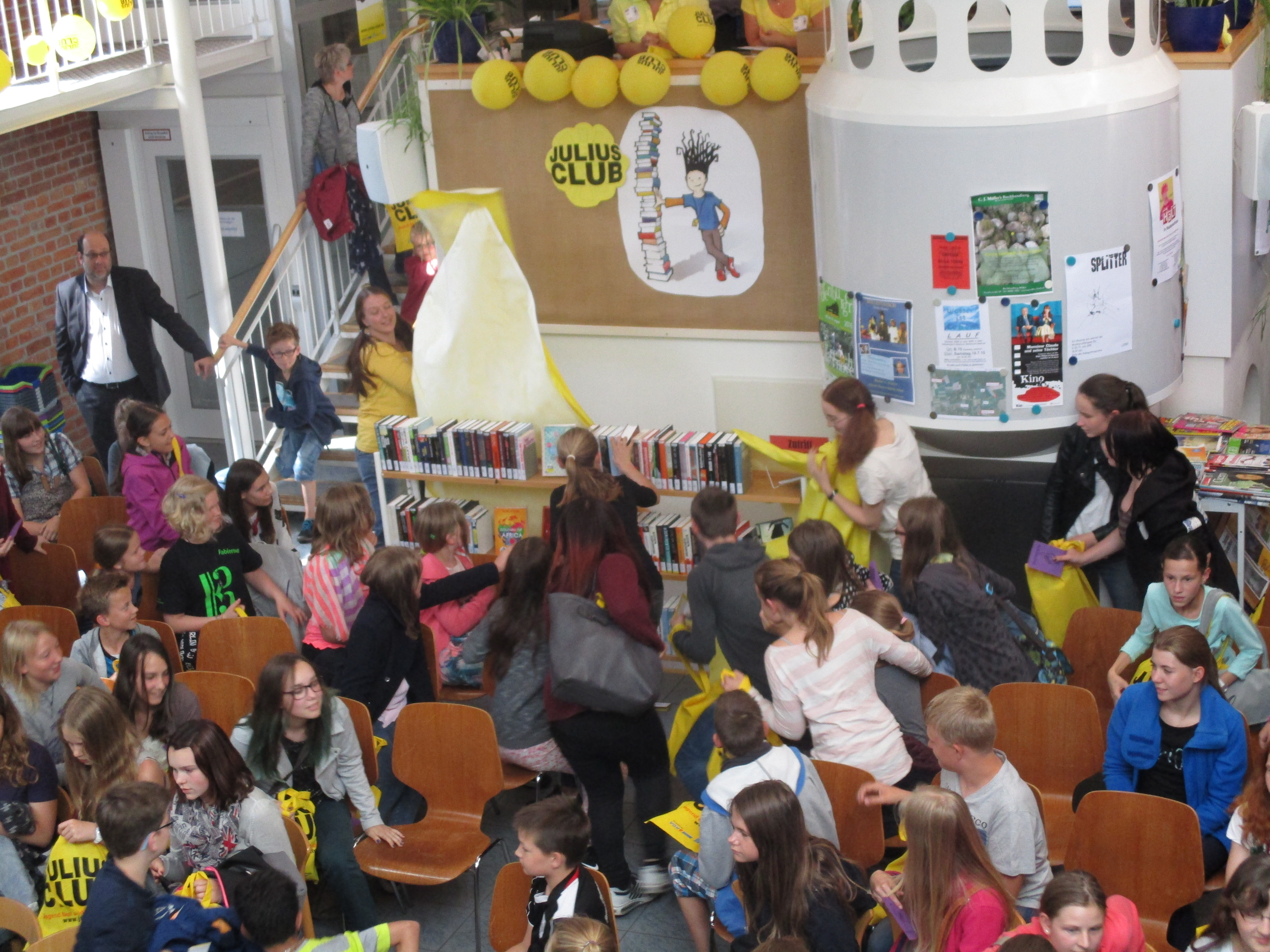 Verrückte Bookslams, wichtige Informationen, leckere Snacks und vor allem die neuen JULIUS-Bücher bekamen am Freitag die rund 75 Rotenburger Julianer, die bei der Eröffnungsveranstaltung waren. Gewinner der Bookslam-Abstimmung war die lustige Perfomance zu „Nicht drücken“. Weitere Videos gibt es auch auf der Facebookseite der Stadtbibliothek http://www.facebook.com/StadtbibliothekRotenburg zu sehen.