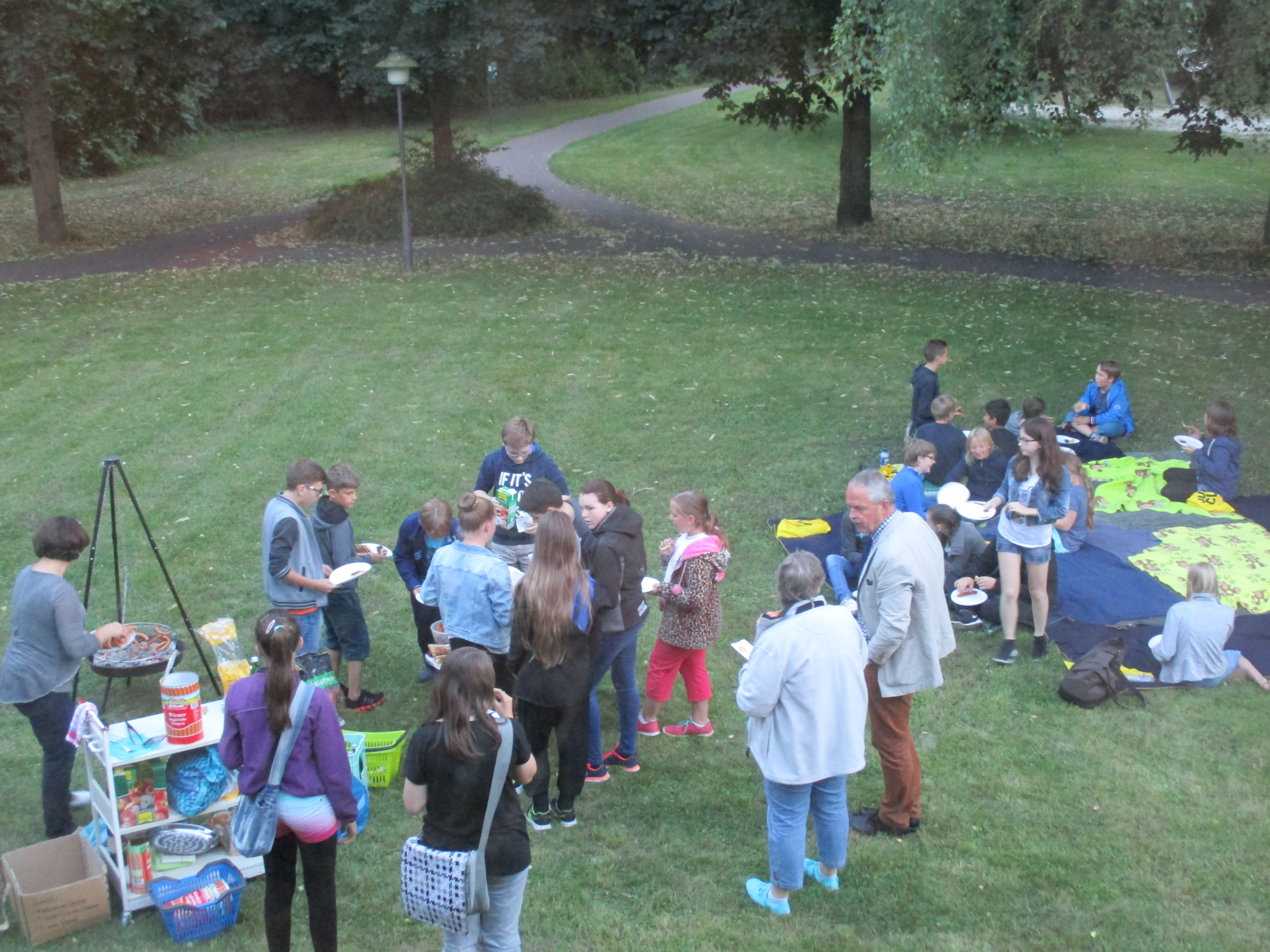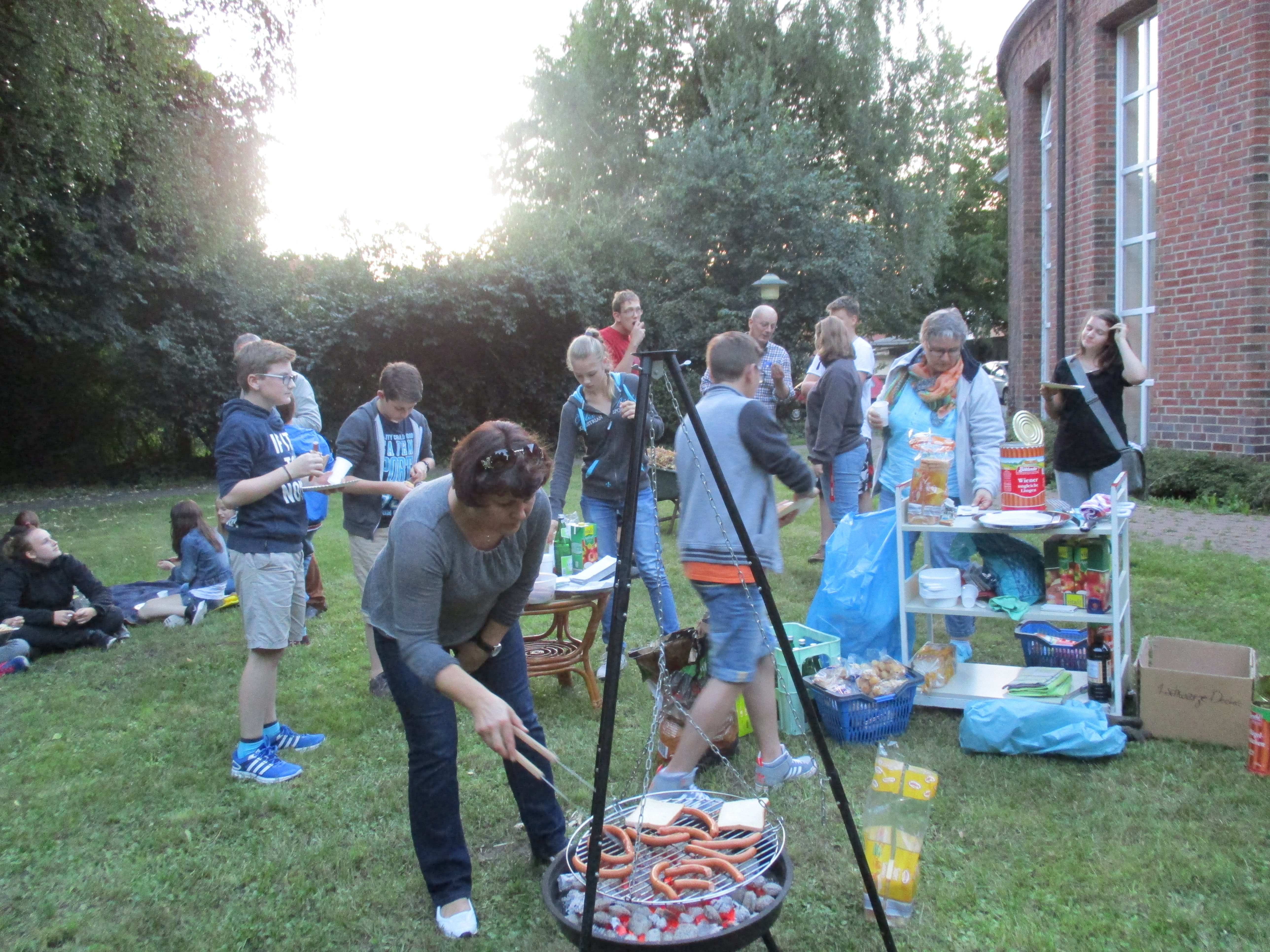 Dazu gab es tatsächlich auch noch Würstchen, die Timo unter widrigen Bedingungen in Regen und Sturm im Lesegarten gegrillt hatte.