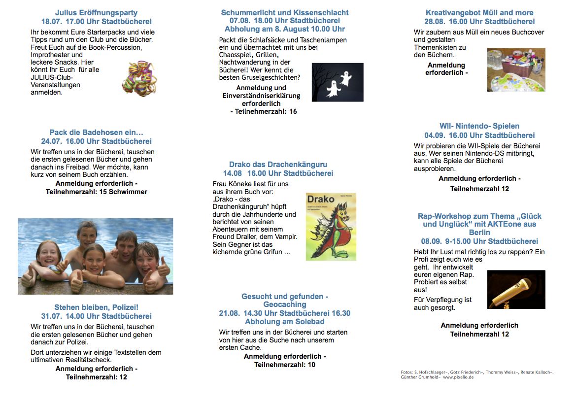Rund 6.450 junge Leser/innen nahmen im letzten Jahr am JULIUS-CLUB teil. Insgesamt erreichte der JULIUS-CLUB in den vergangenen sieben Jahren über 36.000 Kinder- und Jugendliche. Daneben boten die Bibliotheken, allein im letzten Jahr, 522 Veranstaltungen an: Krimi-Workshops, Lesenächte, Trommel-Kurse, Poetry-Slams und Besuche bei der Polizei sind nur einige von unzähligen Beispielen.