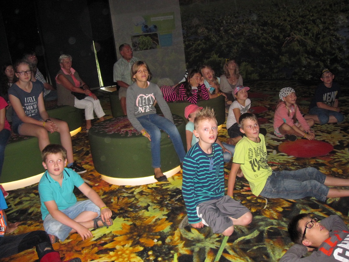 Danach testeten wir unser gerade erworbenes Wissen an einer interaktiven Vogel-Quiz-Wand und im Anschluss lauschten wir der beeindruckenden Show über das Moor, spannend wie ein Krimi gelesen von dem Schauspieler und Sänger Siemen Rühaak.