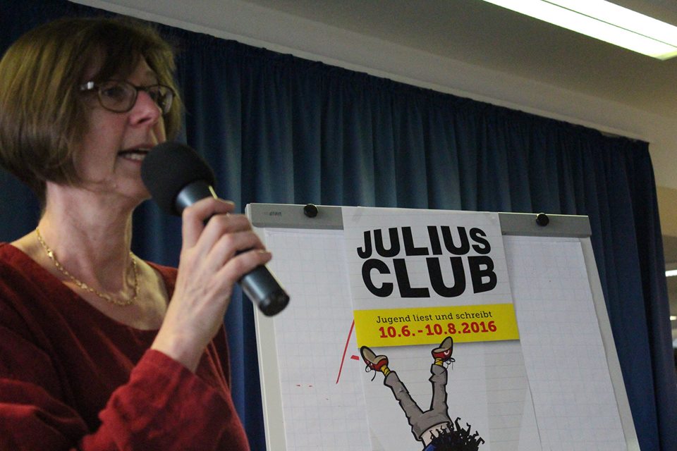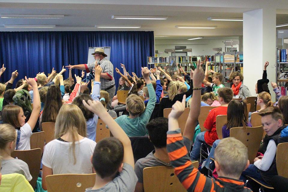 Mit unserem Stadtjugendpfleger Martin Liening war es wieder ein topp Auftakt. Martin2 Mit vier Schulklassen der Oberschule Deegfeld gab es viel Spass. Alle Mit Lieblingsworten. Mit Spontigedichten aus diesen Lieblingsworten. Mit Laut & Leise. Mit wirklich kurzen & knackigen Willkommensworten unserer Kulturreferentin Frau Spanke Frau Spanke und unserer Bibliotheksleiterin Frau Kramer Frau Kramer konnte sich niemand über zu lange Reden beschweren. Dann war Zeit, die Stadtbibliothek und die JULIUS-CLUB Bücher zu entdecken.