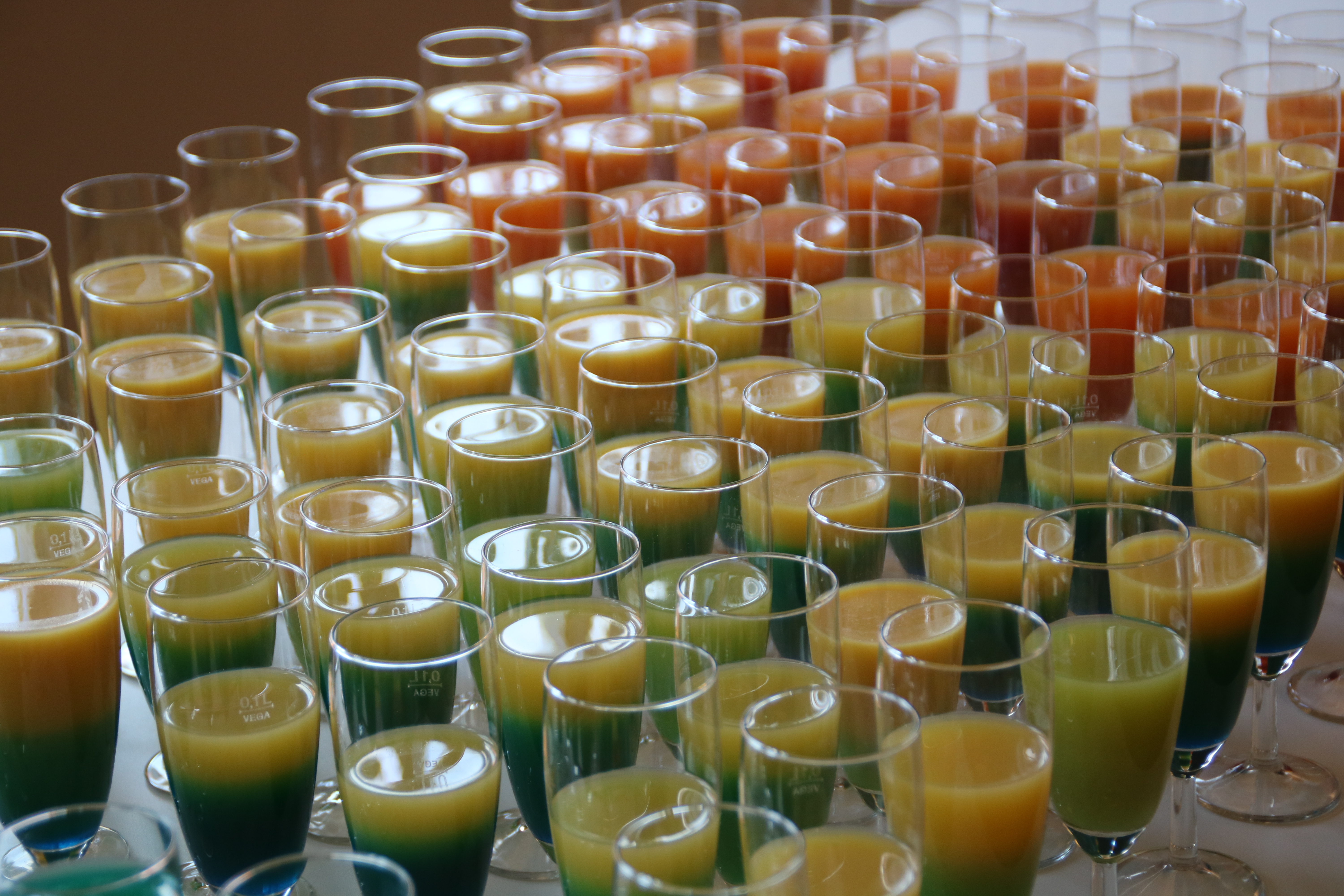 Lecker Sachen gab es. Wie in jedem Jahr. Berüchtigt sind unsere Jots vom Bäcker: SÜSS und SALZIG. Die Cocktailbar war natürlich wieder geöffnet: BLAU GRÜN ROT und vor allem sprudelig süss