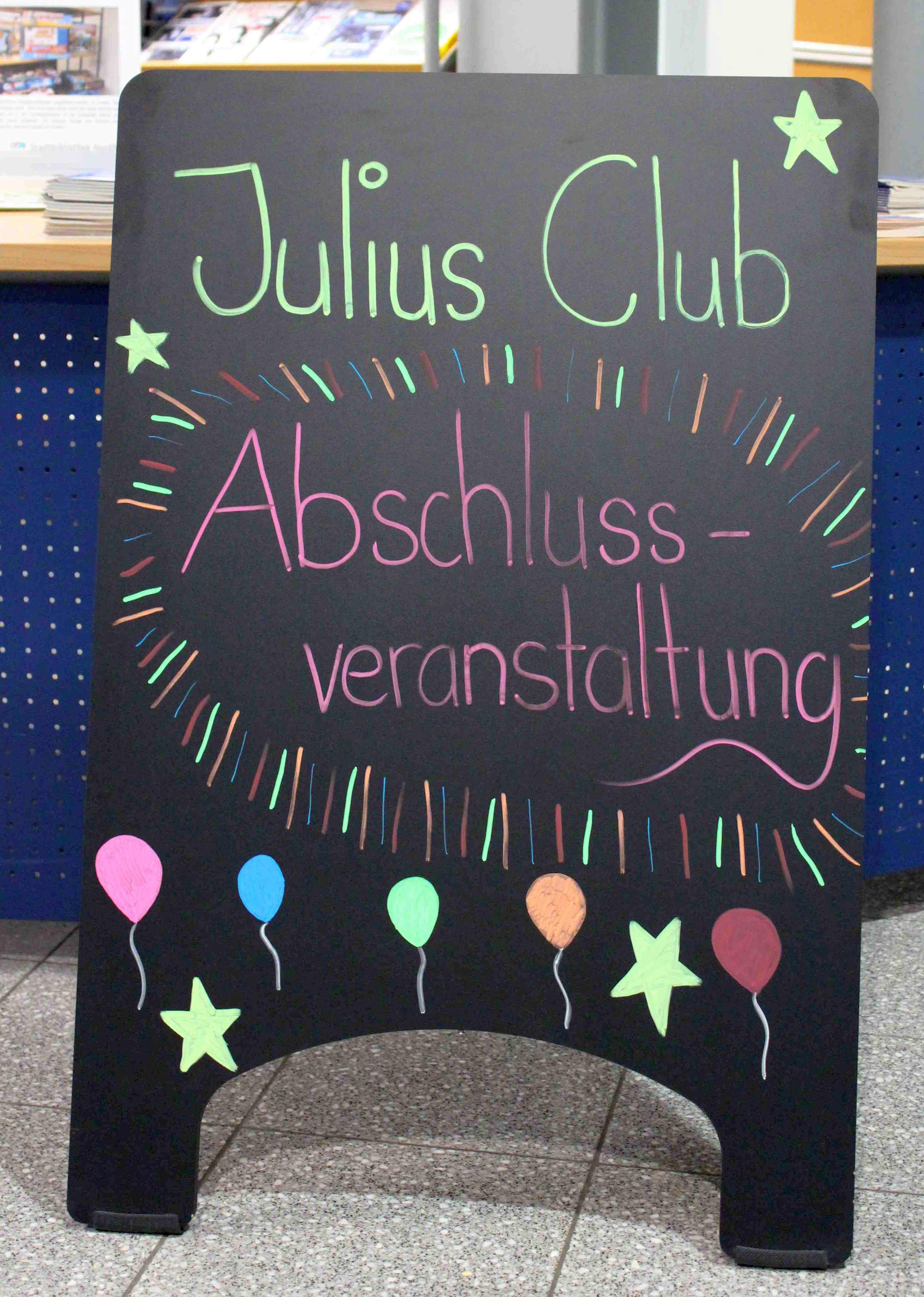 Leider ist der JULIUS-CLUB schon wieder vorbei. Ihr habt dieses Jahr sehr viel gelesen und auch an den Veranstaltungen teilgenommen. Heute werden die Diplome verteilt. Es darf gefeiert werden…