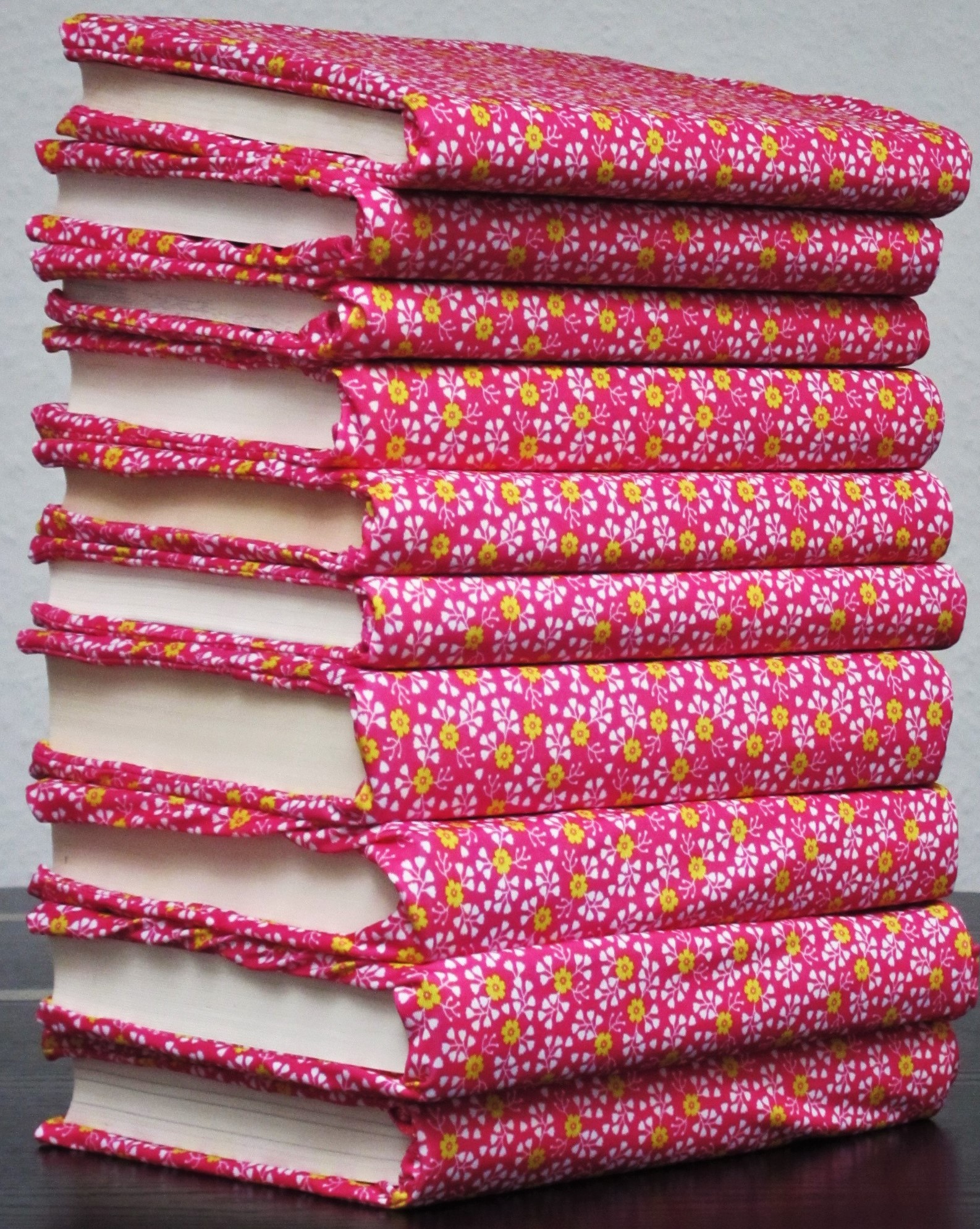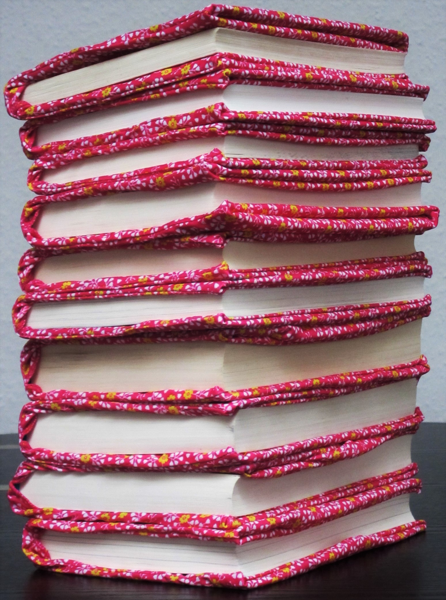 Für die Praktiker: Helle einfarbige Stoffbezüge eignen sich nicht so gut, bei denen scheint das Buchcover durch 😉 und die mit den dunklen Farben gab es neulich schon nicht mehr zu kaufen.